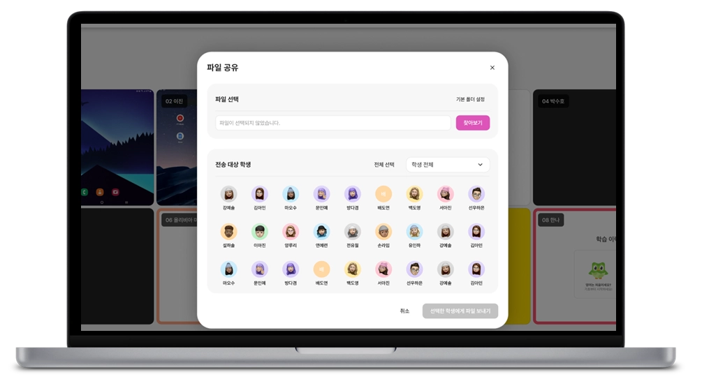 특정 학생 화면을 모든 학생의 스마트기기로 전송